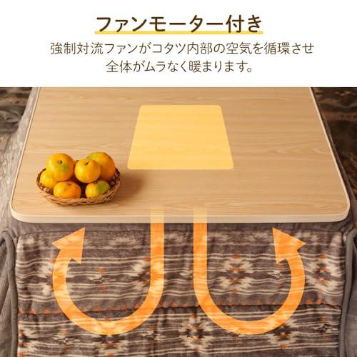 ●ファンモーター付き強制対流ファンがコタツ内部の空気を循環させ全体がムラなく暖まります。