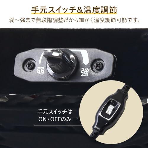 ●手元コントローラー付き(オン/オフのみ)本体にも温度調整ツマミがあるので細かく温度調節したい場合、ツマミで温度レベルを調整可能です。