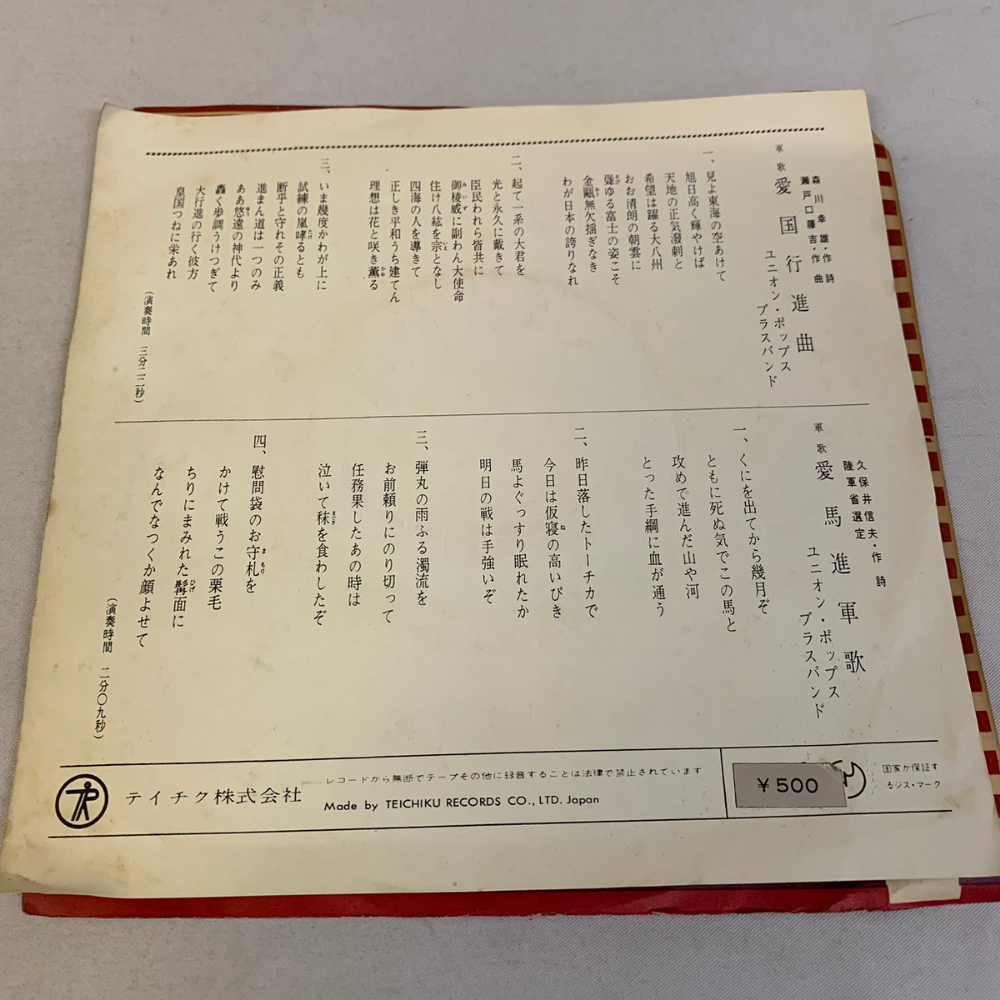 Showa era Union Pops Brass Band Patriotic March Love Horse March Song EP Record