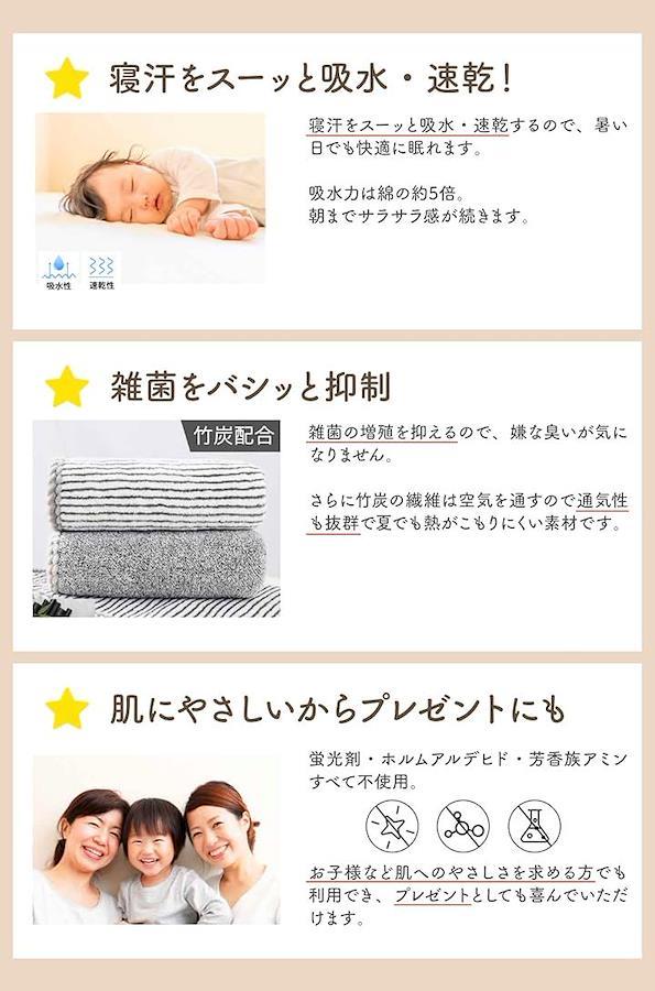 「寝汗をスーッと 吸水 / 速乾 」吸水率は綿の約5倍. 通気性も抜群なので暑い日でも快適に眠れます。