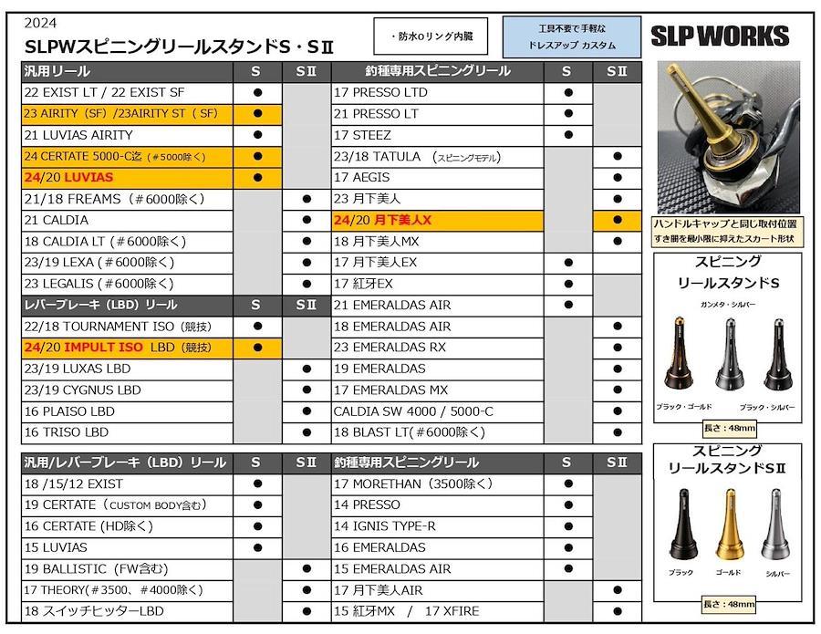 対象機種は【22SLPW スピニングハンドルキャップ】と同様の【 S 】【 SII 】の2タイプ展開で、タイプによって【リールスタンド】のデザインが異なります。