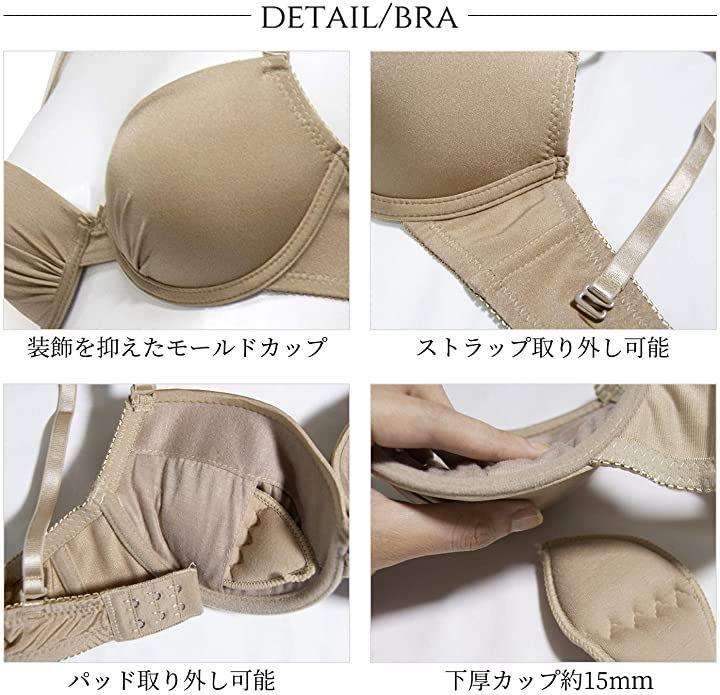 ・響かずキレイに洋服を着こなすことができるのは、ブラジャーの表面に装飾を抑えたモールドカップになっているからです。その為、薄くてピタッとするTシャツでもブラジャーがひびきにくい作りになっています。