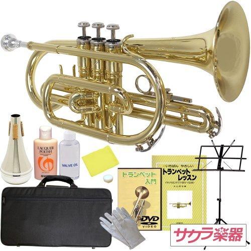 トランペットより柔らかなサウンドが特徴のコルネット。トランペットと比べ短い為、構えやすく演奏性に優れています。教則本や教則DVD、メンテナンス用品を付属したセット内容で届いてすぐに練習・演奏を楽しむことができます!【セット内容】・コルネット本体・セミハードケース・グリス・クロス・マウスピース・譜面台・教則本・教則DVD・バルブオイル・ラッカーポリッシュ・サクラ楽器オリジナルステッカー【安心の出荷前検品体制】お客様が安心して演奏をお楽しみ頂けるように、ご注文頂いた全ての管楽器は必ず出荷前に当店の管楽器専門熟練スタッフが1本1本丁寧に真心をこめて検品・調整を致します。※商品画像は掲載時の物で、小物のイメージや本体の細部が生産時期等により多少異なる場合もございます。予めご了承くださいませ。