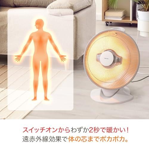 通常1-5営業日で発送:2秒速暖、スイッチ入れたらすぐ暖かい!換気不要でお部屋の空気を汚しません。冷えた朝、着替える時などにおすすめです。寝室やリビングはもちろん、脱衣所やキッチンでも活躍します。【特長】 ・上下首角度調節可能(手動) ・転倒OFFスイッチ ・組立不要サイズ(約)幅42.2×奥行き32.8×高さ46.4cm、重量(約)2.10kg、消費電力:800W/400W、切替式 電気代:約21.6円/時(800W時)※モニターにより、色の見え方が実際の商品と異なる場合がございます。