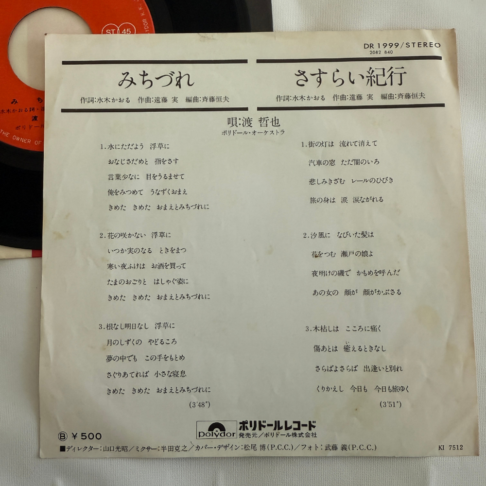Tetsuya Watari Showa Era Vintage EP Record "Michizure Sasurai Kikou" 7-inch Extended Play