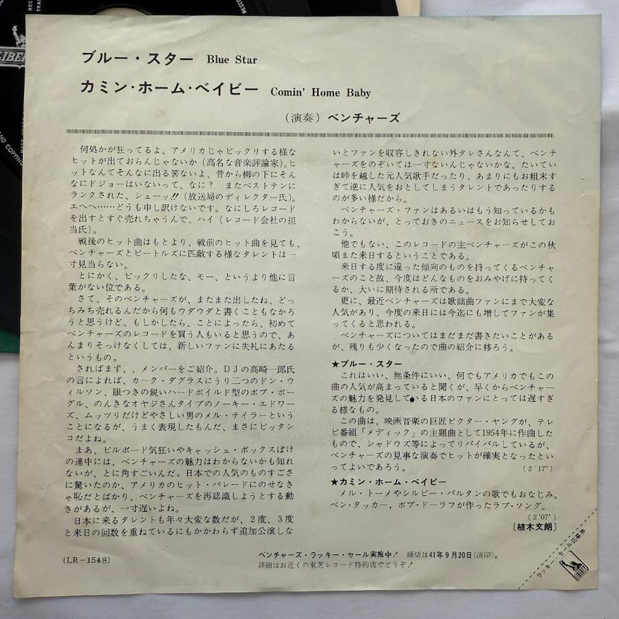 The Ventures Showa Era Vintage EP Record Blue Star Comin' Home Baby 7-inch Extended Play
