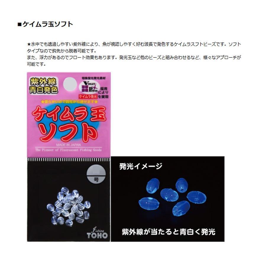水中でも透過しやすい紫外線により、魚が視認しやすく好む波長で発色するケイムラスフトビーズです。ソフトタイプなので鈎先から脱着可能です。 また、浮力があるのでフロート効果もあります。発光玉など他のビーズと組み合わせるなど、様々なアプローチが可能です。