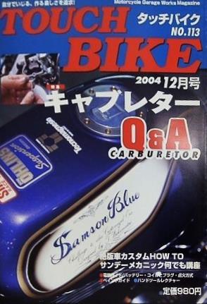 JAN等:4910059731243商品名:TOUCH BIKE タッチ バイク NO.113 キャブレターQ&A サンデーメカニック講座属性:本詳細:状態:表紙に少々の汚れあり。表紙に少々のイタミ・こすれ傷あり。表紙にきつい日焼けあり。その他: