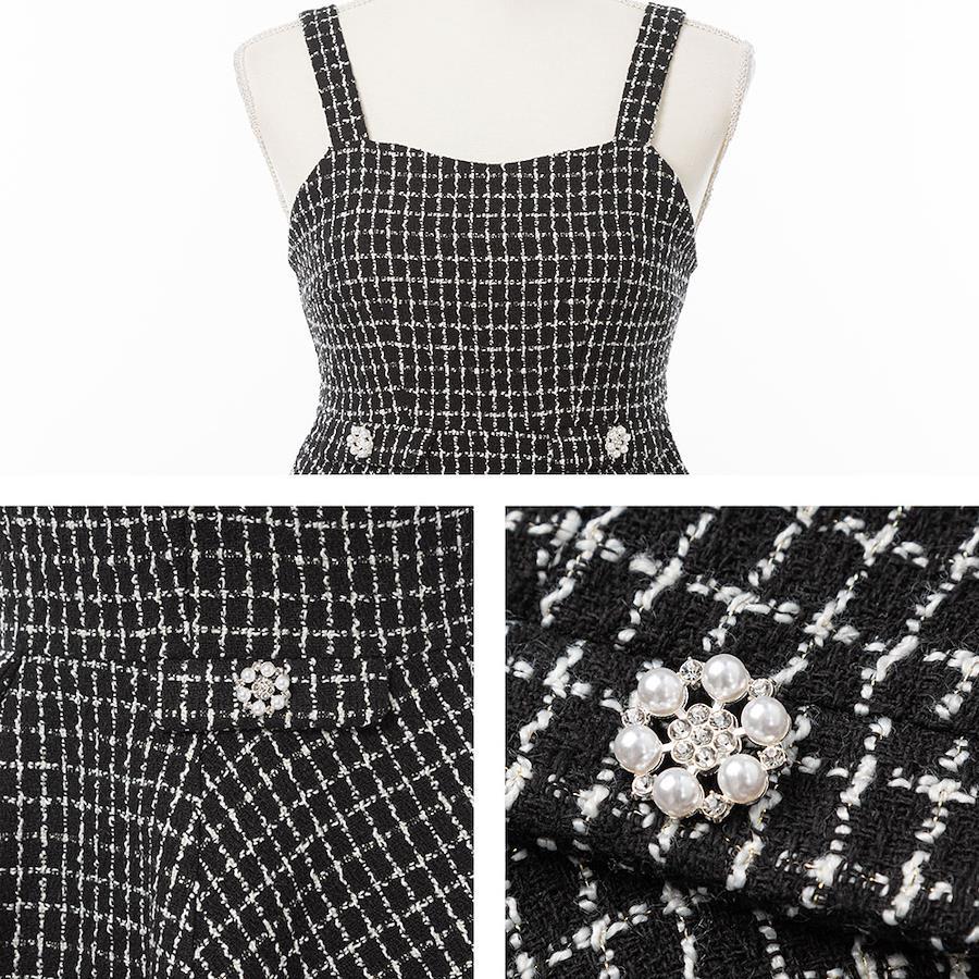 ビジューボタンがアクセント、シンプルツイードジャンスカのご紹介。【デザイン】シンプルなミニ丈ジャンスカです。肩のベルトは後ろで長さ調節が可能です。背中のジップファスナーで着脱です。引手がハートチャームなところがちょっぴりかわいいポイント♪ウエストの飾りフラップにビジューボタンがちょこんとついています。※ポケットはありません。【素材】ちくちく感のない、程よい厚みのツイード素材です。裏地もついていて、透け感なく着ていただけます。【コーディネート】王道ブラウスを合わせるとフレンチがーリーに。襟付きブラウスを合わせると上品な量産型コーデにも合わせていただくことができます♪シンプルなデザインなので、色々なトップスと合わせていただきやすい、万能ジャンスカです。《透け感》なし 《生地の厚さ》普通 《裏地》あり 《伸縮性》なし《生産国》中国