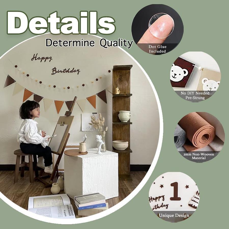 誕生日を迎えた赤ちゃんの写真をおしゃれに撮影- 誰でも簡単に飾り付けできるオールインワンセット、組み合わせに迷うことはもうありません? インスタ映え間違えなしの写真が撮れます。壁に貼り付けて、お食い初めのお祝いの飾りに、そして温かみのある雰囲気です。充実のセット内容 happy birthdayフェルト生地バナーx1、160cm フェルト生地フラッグガーランドx1、250cm フグボールガーランドx1、質が高いですので、きちんと保存すれば、後にも持続に使用でき、コスパが高いです。簡単で便利 お子様や大切な方のお誕生日を素敵に彩るデコレーションセット。タペストリーのフォントもベーシックなデザインでカジュアルな雰囲気にぴったりとマッチしています、簡単でオシャレです。壁に貼っても掛けっても、天井から吊っても、喜びの雰囲気を盛り上げることができます、飾り方は多種多様で。製品には必要なすべての材料が含まれています。適用場合 友達や子供などと一緒に楽しくデコレーションして、いい思い出に残って、もっと準備の過程を楽しめて、大切な人に忘れない誕生日を与えます。特別な祝日、普段お部屋の飾り、インテリア、お店の飾りなどにも適用。室内はもちろん、お庭や野外でのパーティー。イベントでもご利用頂けます、1歳お祝い、誕生日会や、結婚式、二次会いろんな記念日パーティーには適用です。飾り付けはアレンジ次第でバリエーションは無限大!【免責事項】メーカーによる商品リニューアルに伴いパッケージ(内容量も含む)変更が行われた場合、新パッケージでお届け致します事ご了承願います。
