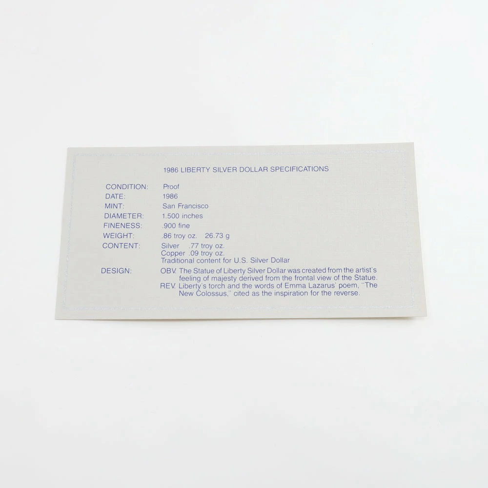| ライン | アメリカ 自由の女神 プルーフ銀貨 1ドル |
