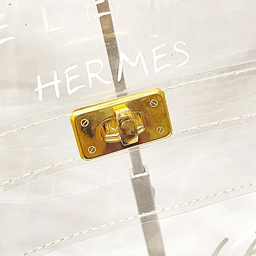 【ブランド】HERMES【品名】ビニールケリー【対象】レディース【実寸(cm)】縦:30横:39.5まち:12取手高さ:5*多少の誤差はご容赦ください【素材】ビニール【原産国】【カラー】クリア【商品状態】破れや大きな汚れなどはありません。金具にややくすみ、小傷、小さな汚れなどございます。簡易的に清掃済みです。【管理番号】OJ11【付属品】なし【備考】-