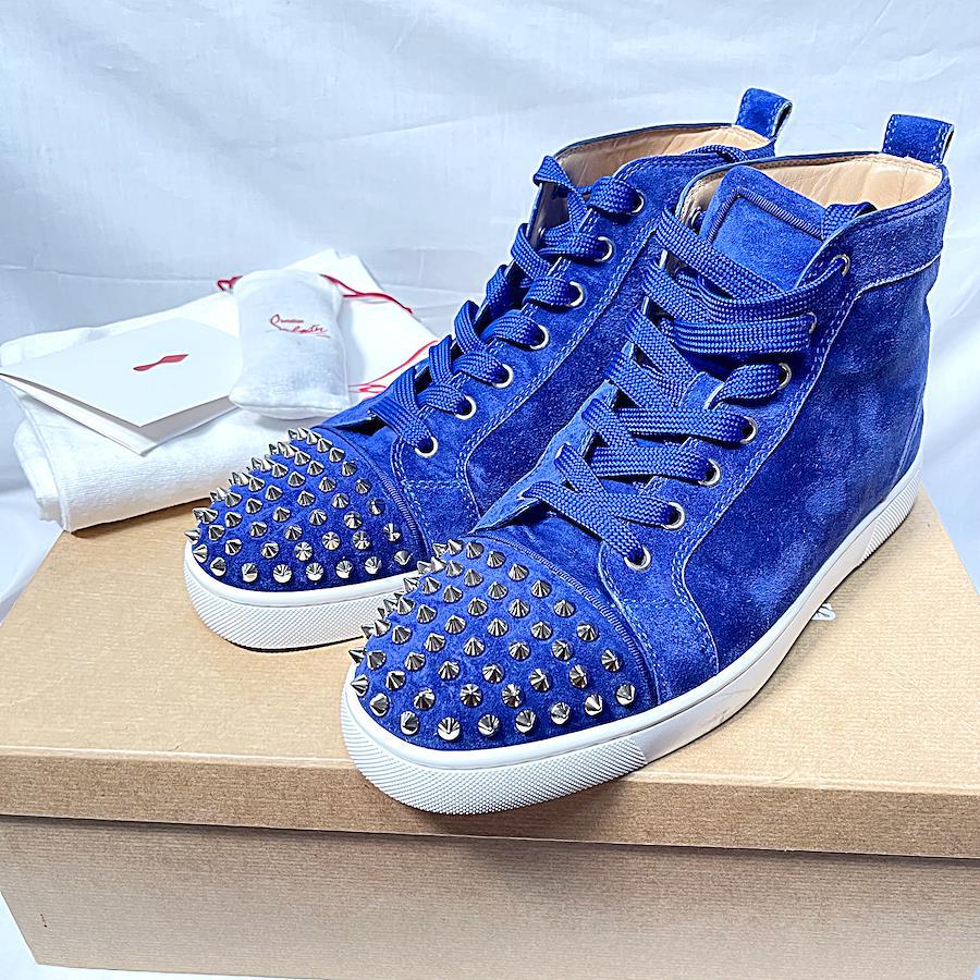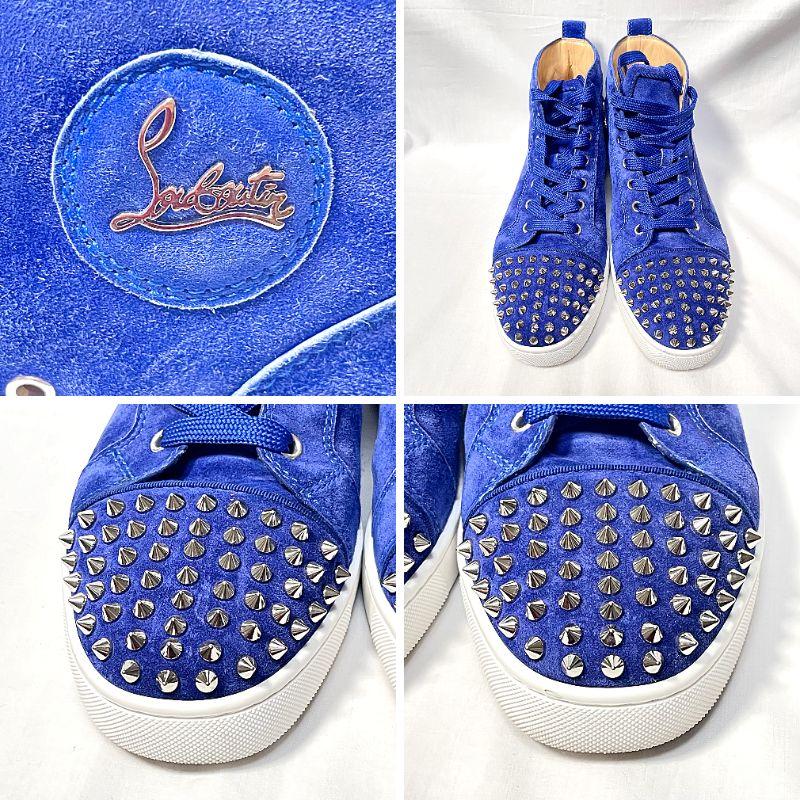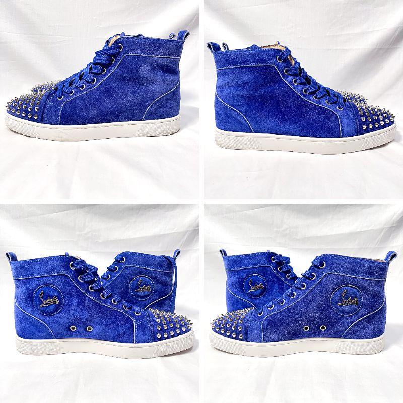 【ブランド】クリスチャンルブタン【品名】スタッズスニーカー【対象】メンズ【サイズ】41【実寸(cm)】アウトソール全長 28.3cm ワイズ 10.2cm*多少の誤差はご容赦ください【素材】【原産国】EU【カラー】ブルー【商品状態】ややスレあり、軽微な汚れあり。当方では目立たないものと判断しましたがお写真もよくご確認ください。保存袋に汚れあり。箱にやや劣化あり。【商品番号】TJ8【付属品】保存袋、替え紐、箱など。写真に写っているものがすべてです。【備考】-