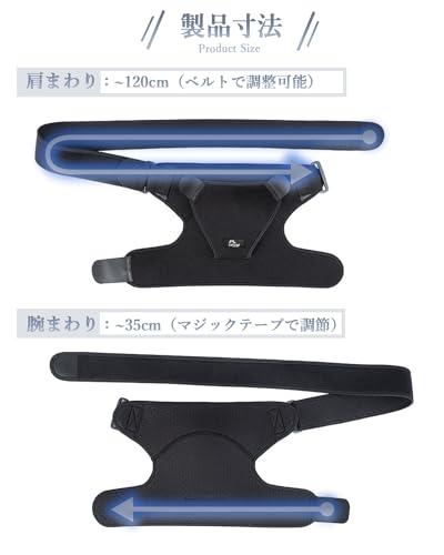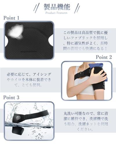 【安定したサポート力】この肩サポーターは日常生活からバスケ、バドミントン等のスポーツにおいても、肩への衝撃を吸収してぐらつきを抑えホールドします。強力なマジックテープで接着されるため、大きく動いてもズレたりしません。 【左右兼用でフリーサイズ】左右の肩とも装着できる仕様で、肩まわり120cm、腕まわり35cmまで対応可能。調整ベルトを利用すれば体型に合わせてしっかりフィットできます。男女問わずのフリーサイズです。 【アイシングやカイロ装着可能】アイシングやカイロを本体に装着することでアイシングサポーター、保温サポーターとしても利用できます。便利で多機能の肩サポーターです。 【通気性に優れたメッシュ生地】メッシュ生地でできているため、通気性が良く、汗をかいても蒸れにくく長時間の着用によるべたつきをけいげんし、快適な装着感を実現してくれます。 【シンプルな4ステップ操作】 1.調整ベルトの片方を本体を通し、マジックテープで固定。2.本体を肩に装着し、調整ベルトを体一周回す。3.調整ベルトのもう一方をマジックテープで固定。4.上腕のマジックテープを接着すれば取付完了。 【丸洗いOK!】丸洗い可能ですので夏場や運動時などで汗をかいても衛生面に問題ありません。洗濯方法:30度の水温で手洗いしてください。洗濯機の場合は洗濯ネットをご利用ください。 【品質保証、アフターサービス安心】出荷前に厳格な品質検査を行い。万が一、お手元に届いた商品に欠陥があるか、使用中に疑問がある場合は、「注文履歴」?「出品者に連絡する」から弊社ショップにご連絡ください。24時間以内に返信し、迅速に対応させて頂きます。