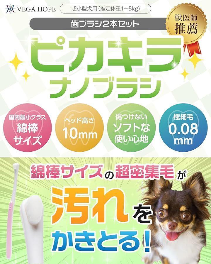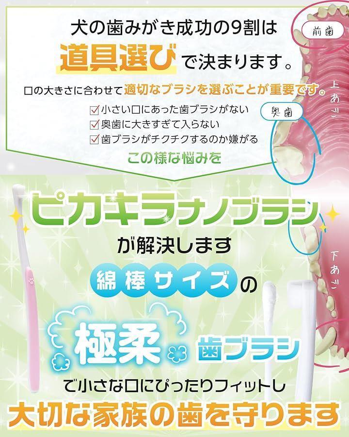 そこでワンちゃんの為の歯磨きセット「 ピカキラナノ ブラシ超小型犬用」が誕生しました。