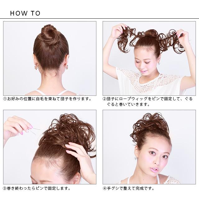 自毛の団子に巻き付けて留めるだけのロープ状のウィッグです。