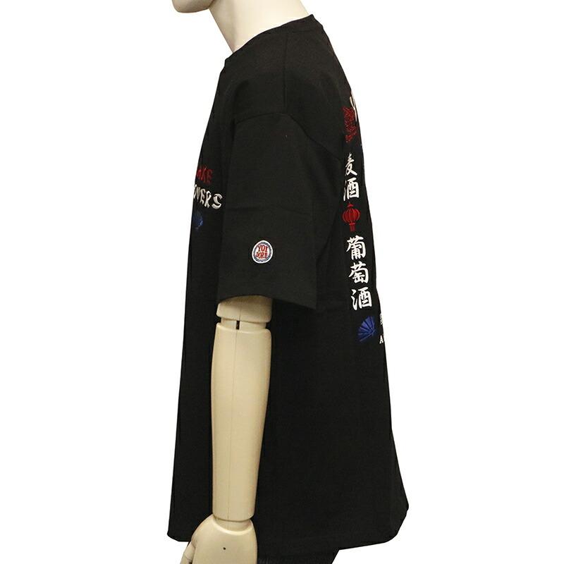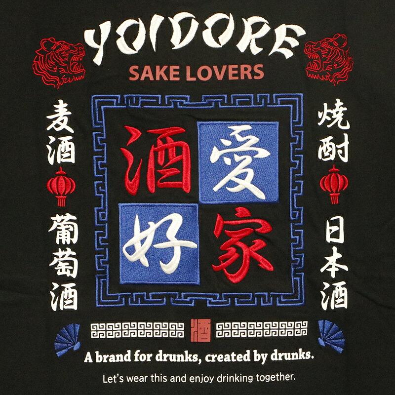フロント両胸にはさりげない存在感がある「愛酒家」刺繍ロゴと「SAKE LOVERS」のプリントロゴデザインがクール。