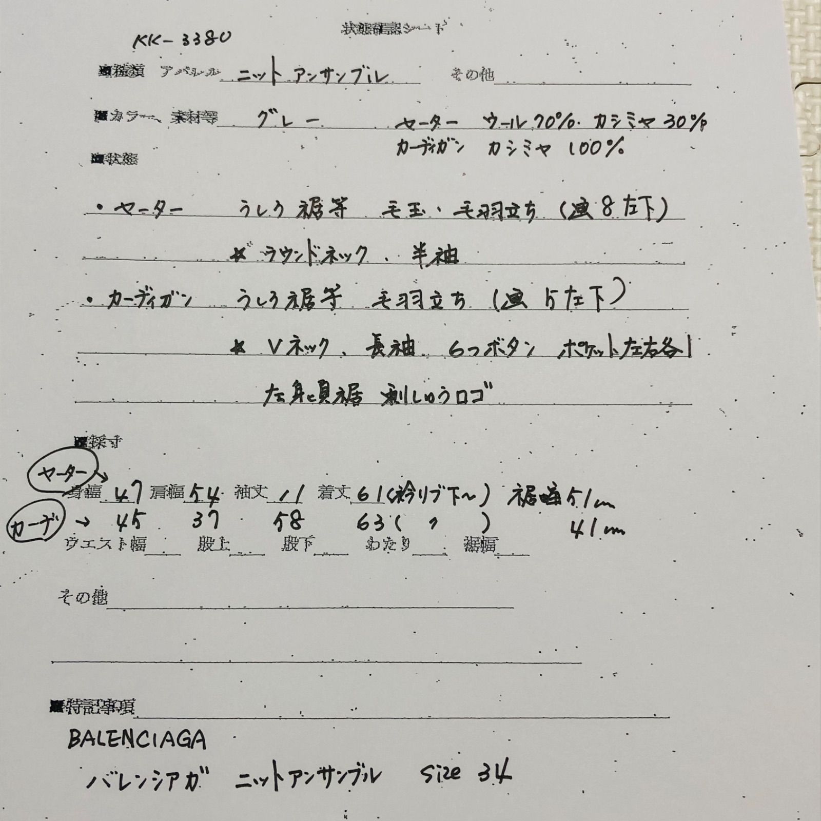 ■商品概要BALENCIAGA バレンシアガニットアンサンブル・カーディガン カシミヤ100% 長袖 6つボタン 刺しゅうロゴ・サマーセーター ウール70%カシミヤ30% ラウンドネック 半袖size34(S相当) ※詳細は下部寸法値を必ずご確認くださいグレーレディースラグジュアリー 高級 ハイブランド