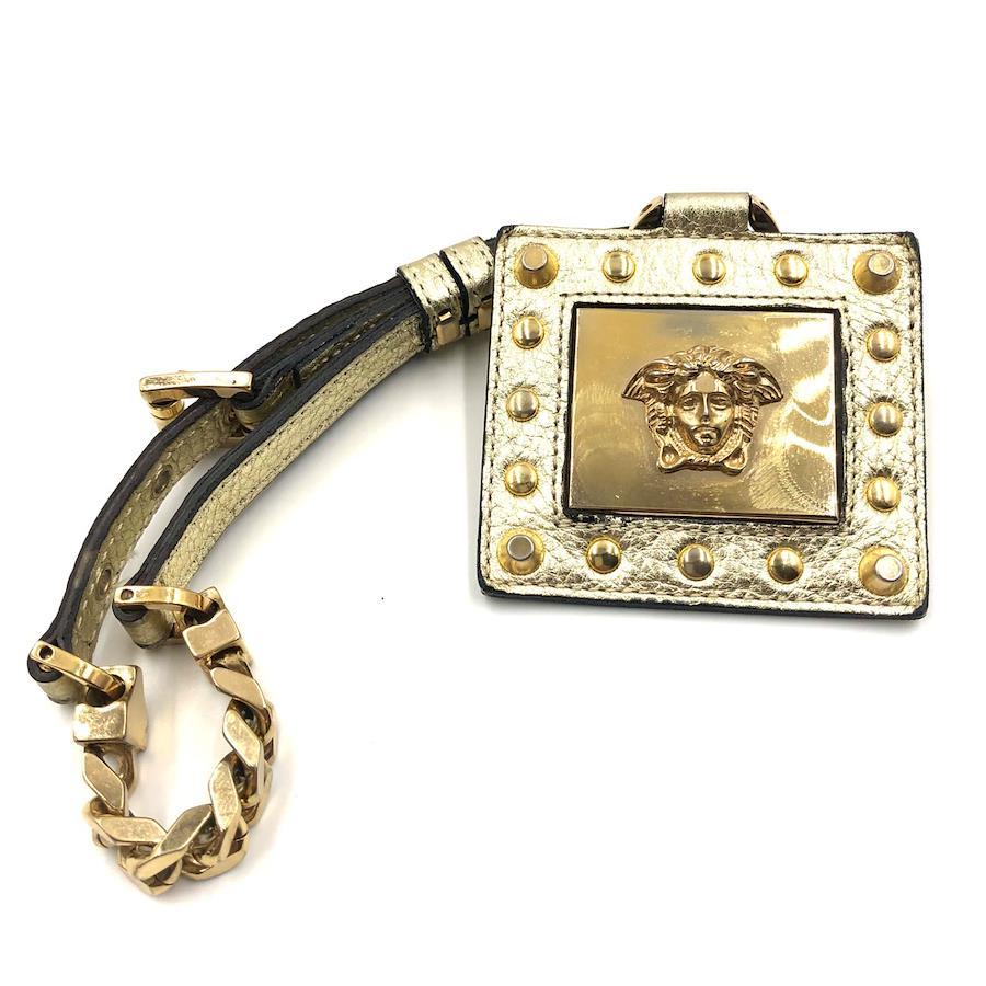 ■商品概要VERSACE ヴェルサーチメデューサ スタッズチャーム バッグチャームレザー金具プレート×チェーンゴールド×シャンパンゴールド