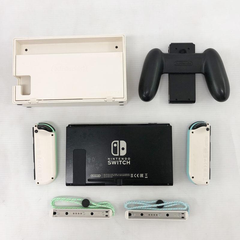 ジョイコン(R)スティックイタミ、Aボタン・Rボタン悪反応、本体裏スタンド破損のためジャンク扱いとなります。僅かに生活臭などが感じられます。動作確認、初期化済み。画面左側 若干のヤケ有り。ダウンロード版「あつまれ どうぶつの森」再ダウンロード不可。