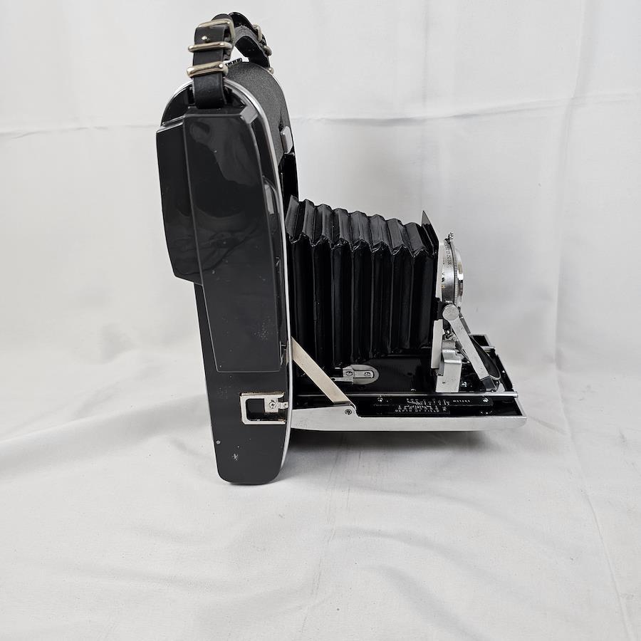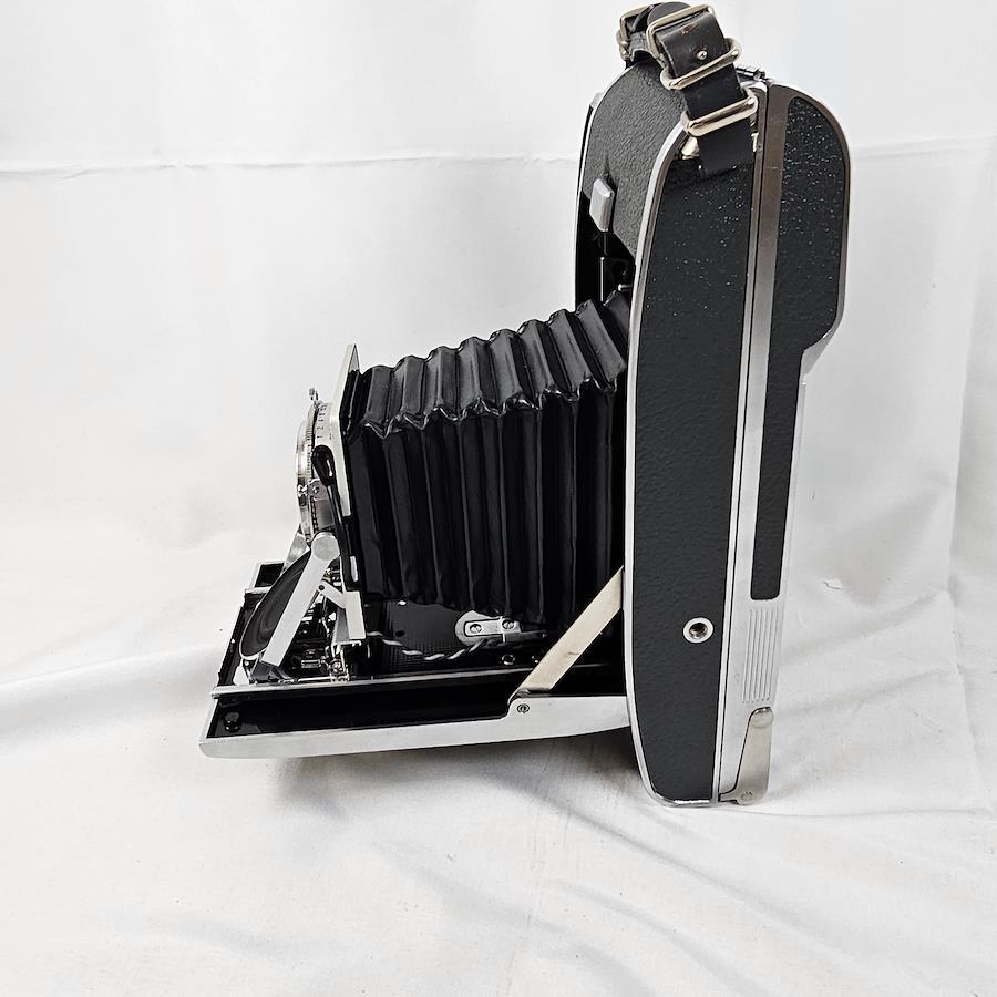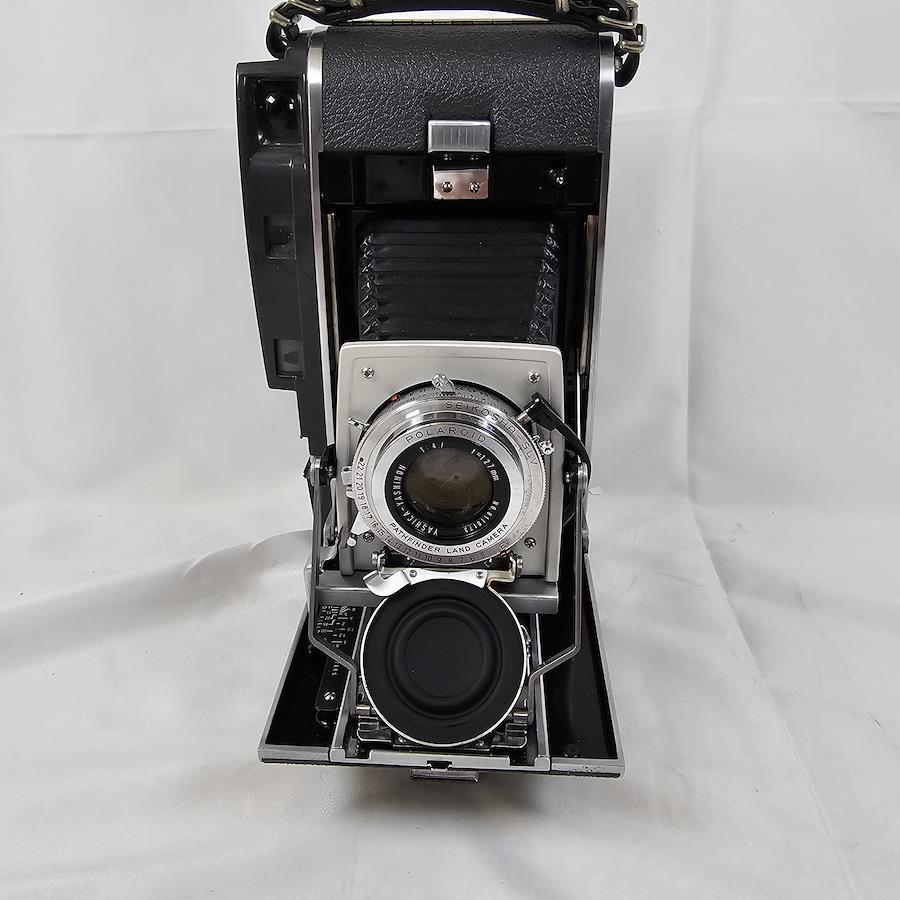 【商品の状態・動作確認について】動作確認は未実施です。シャッターが正常に下りること、および各ダイヤル類や蛇腹の伸縮など、可動部分がスムーズに動くことは確認できております。しかしながら、電気系統やフィルムを入れての撮影テスト、現像機能など、専門的な知識が必要な部分については、当方に知識が無いため確認ができておりません。大変古い商品のため、ご購入後は【コレクションまたはインテリアのオブジェ】としてお考えください。実用での動作保証は致しかねますので、あらかじめご了承ください。