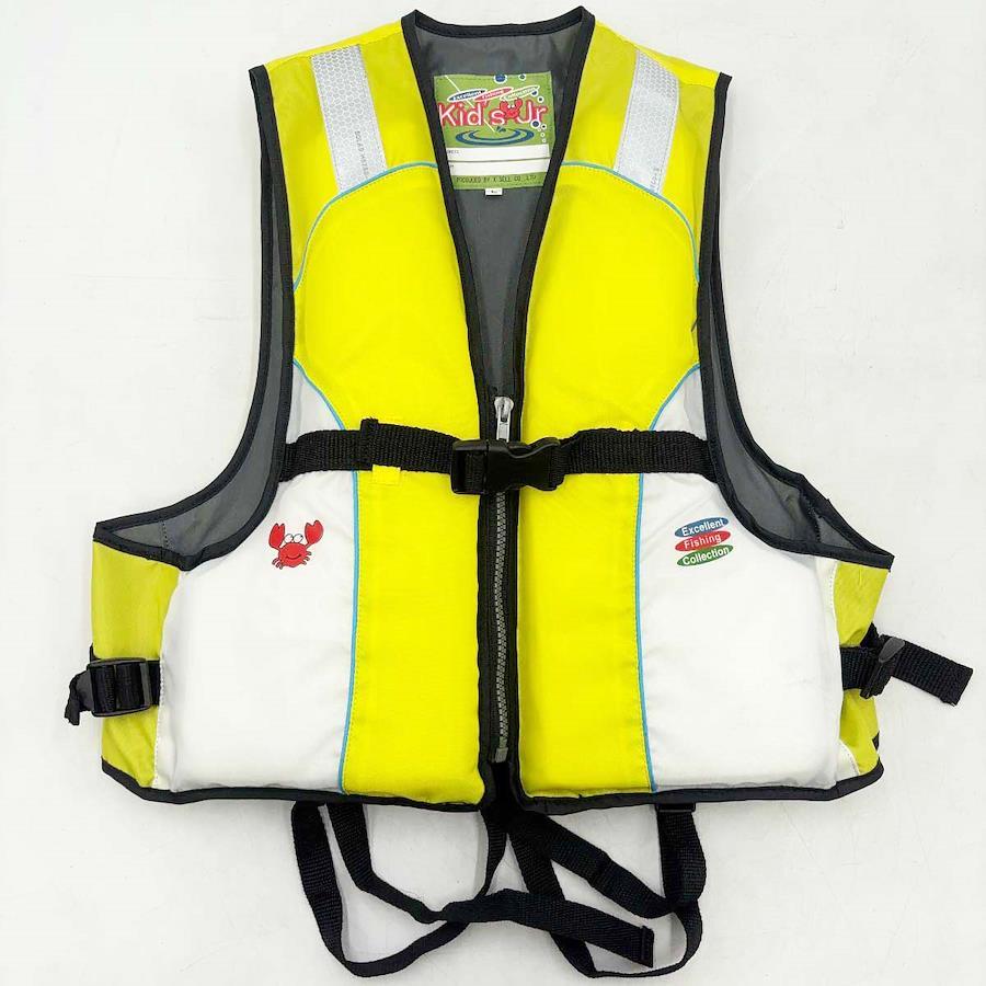 [タイプ] 子供用ライフジャケット SOLAS H6750-2[表記サイズ] L[対象] キッズ[カラー] イエロー[身幅] 約30cm[着丈] 約44cm[状態] 使用1度のみ。目立ったダメージはありませんが、汚れがみられます。また、内側のネーム欄に名前が書かれています。
