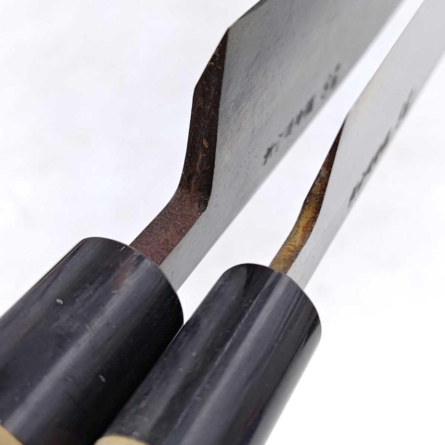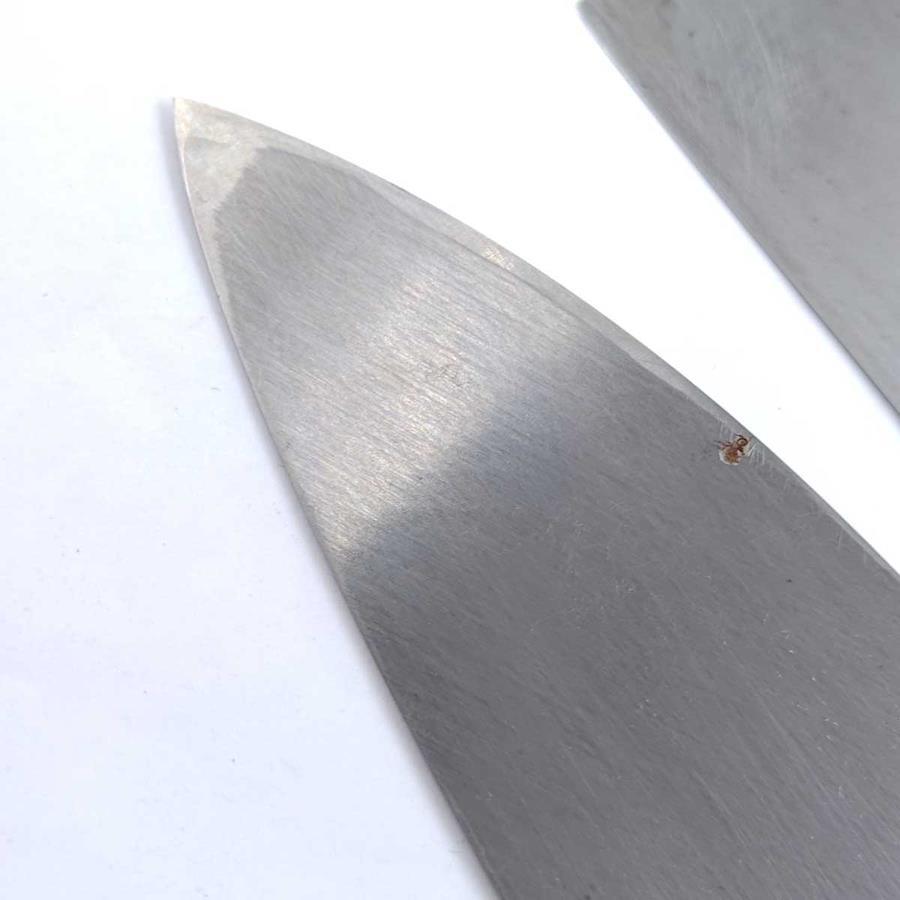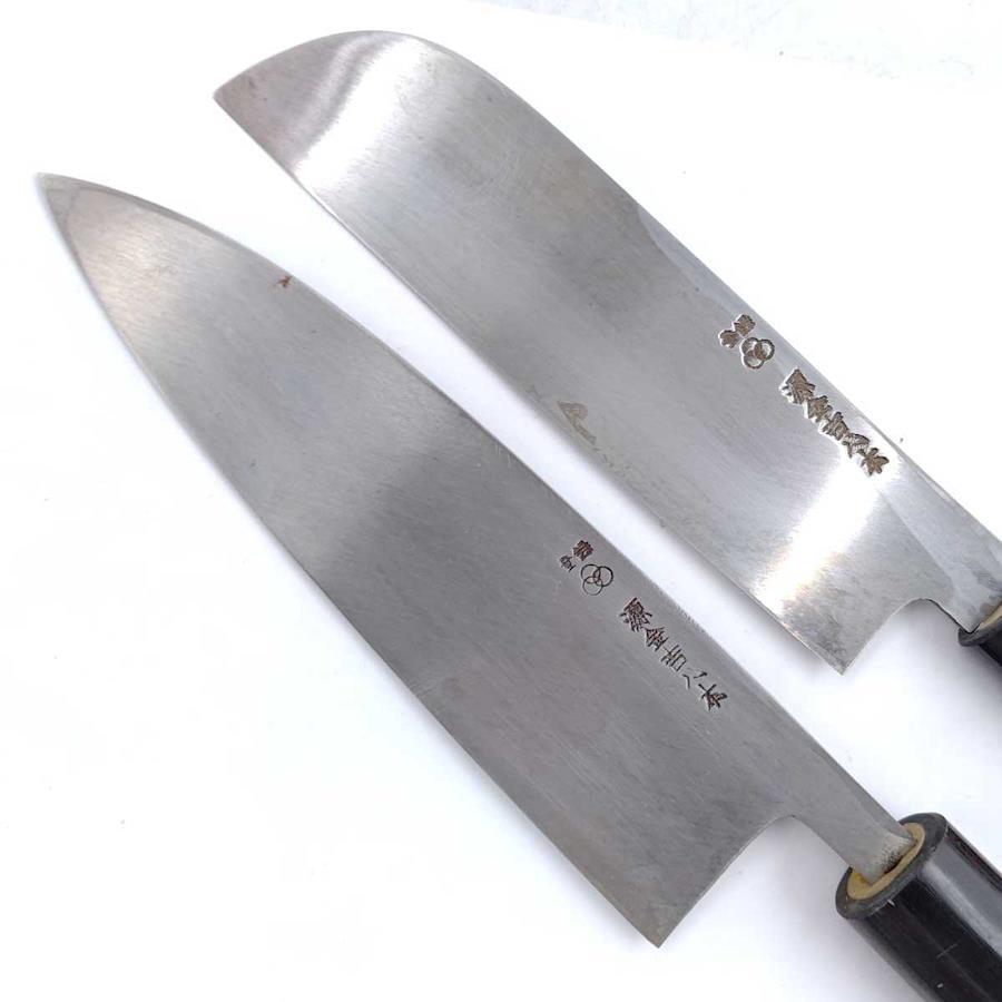 [タイプ] 源金吉 八木庖丁 5本セット ネーム刻印入[状態] ある程度の使用感があり、一部サビのあるものが含まれます。ケースにダメージがあります。また、包丁に名前の刻印があります。(白塗り箇所)