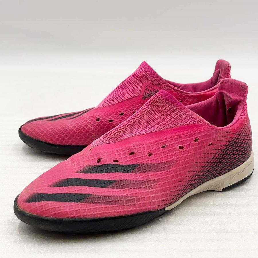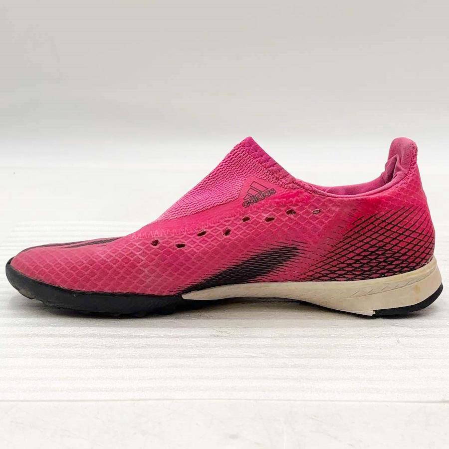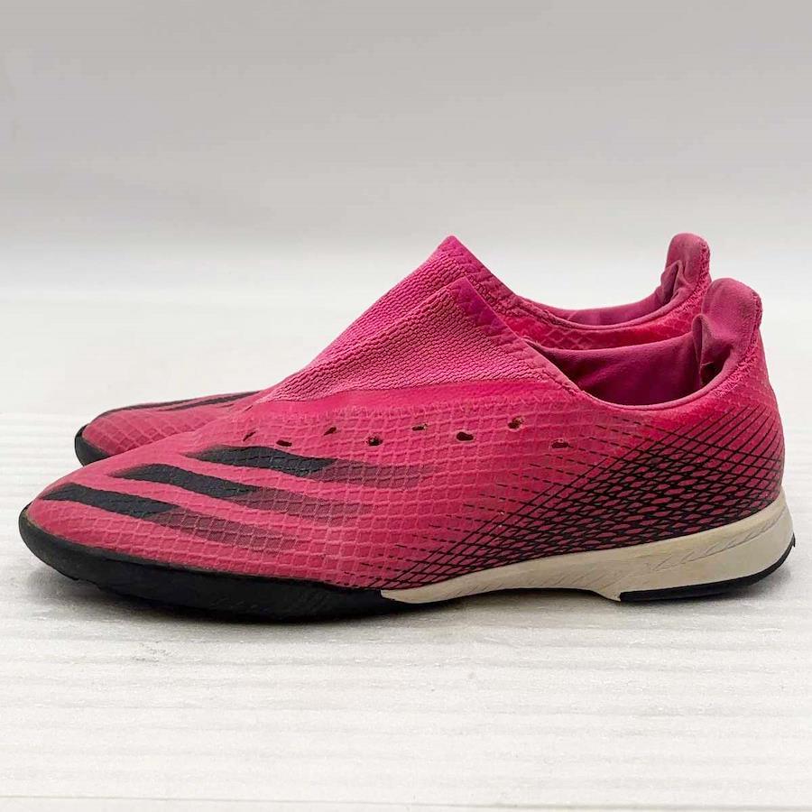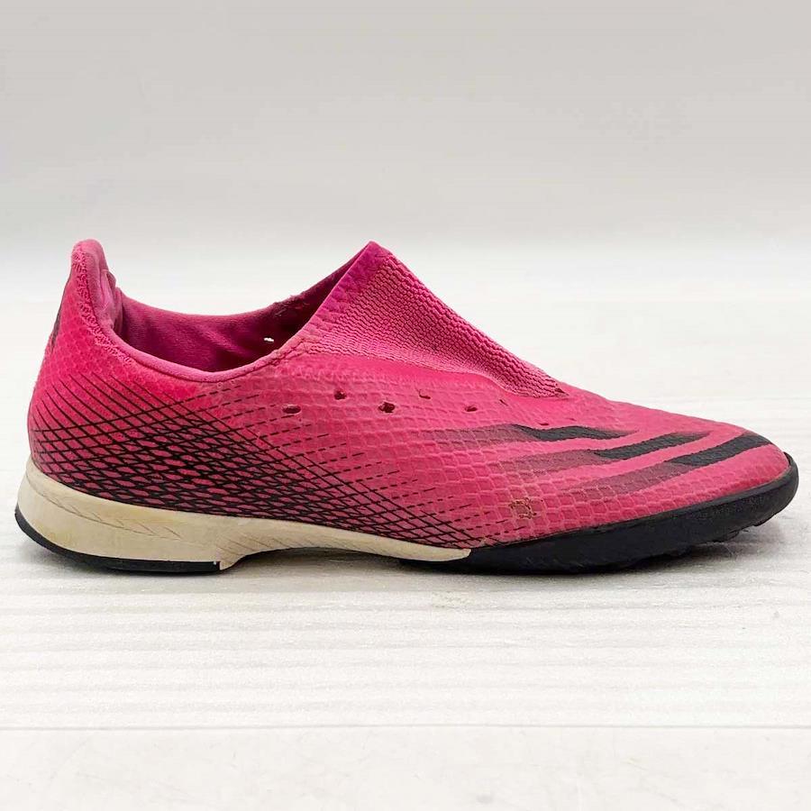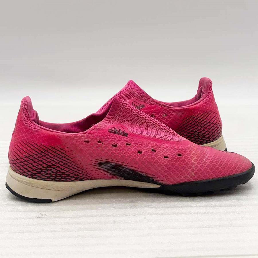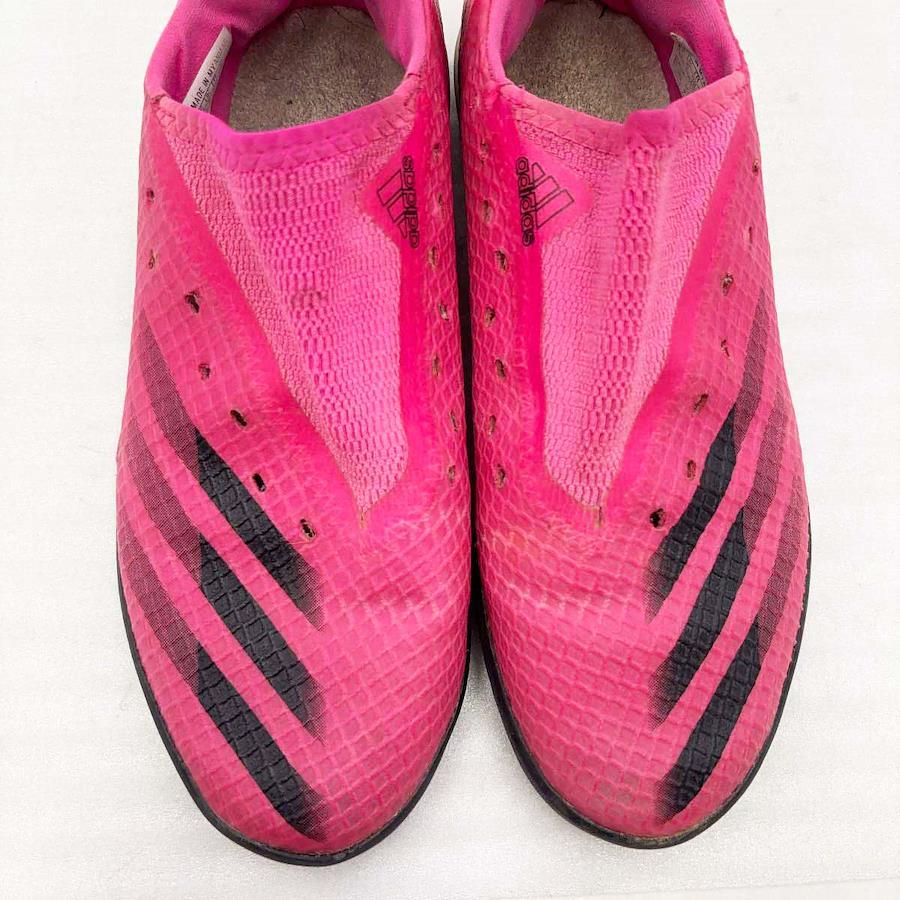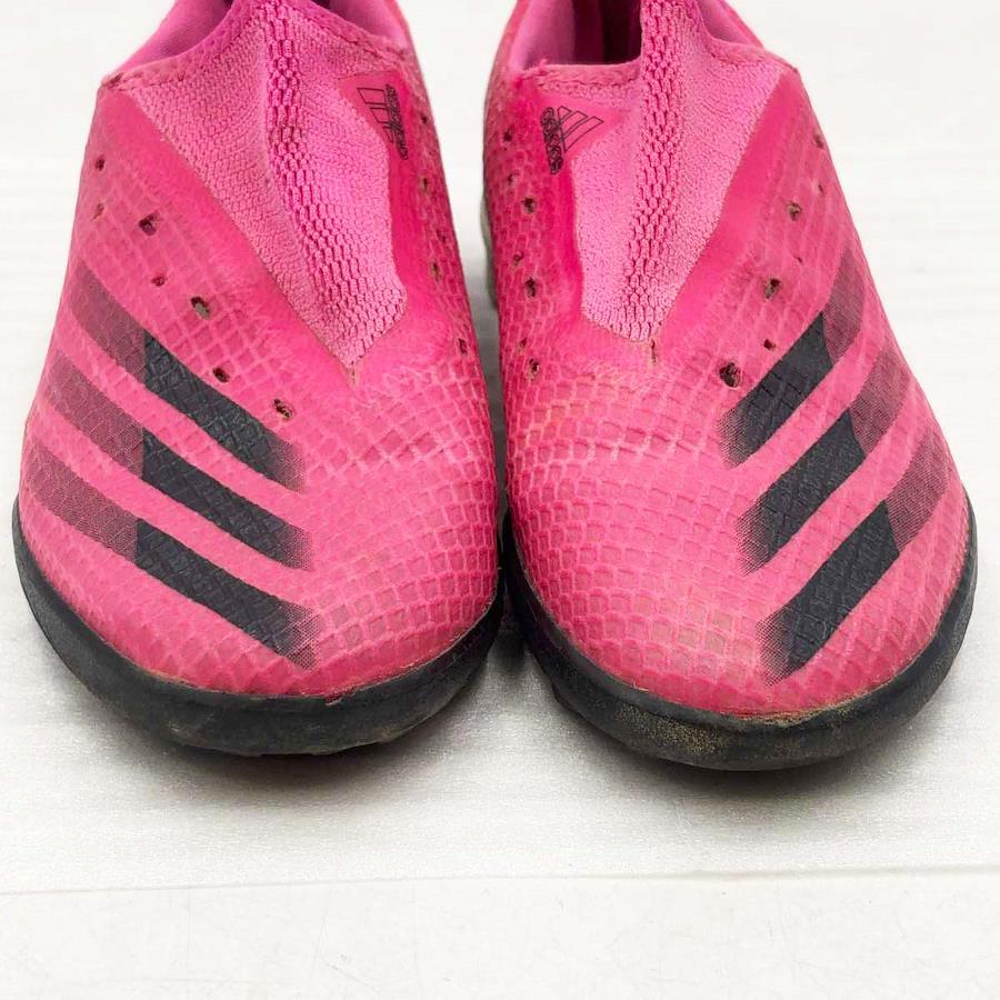 [タイプ] アディダス エックスゴースト .3 TF ジュニア[表記サイズ] 24cm[対象] キッズ[型番] FW6927[カラー] ピンク[状態] 使用感があり、汚れやダメージがみられます。また、紐がありません。