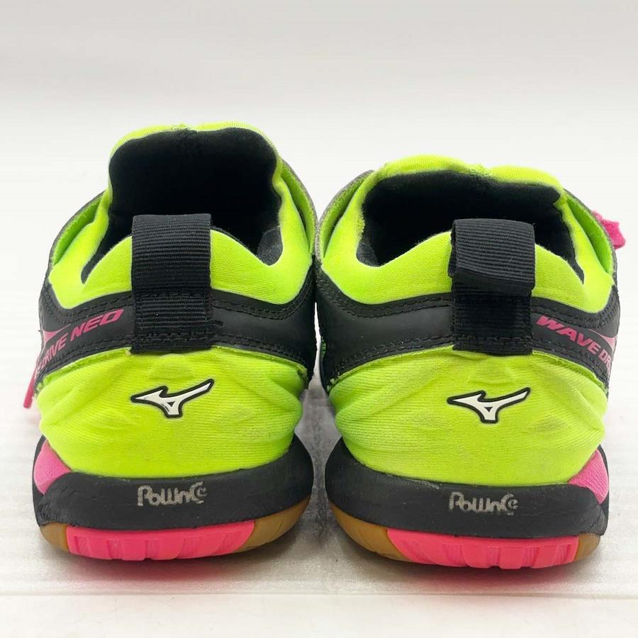 [タイプ] 卓球シューズ ウエーブドライブNEO[表記サイズ] 24cm[対象] レディース[型番] 81GA180035[カラー] ブラック×ホワイト×グリーン[状態] 使用感があり、ダメージがみられます。