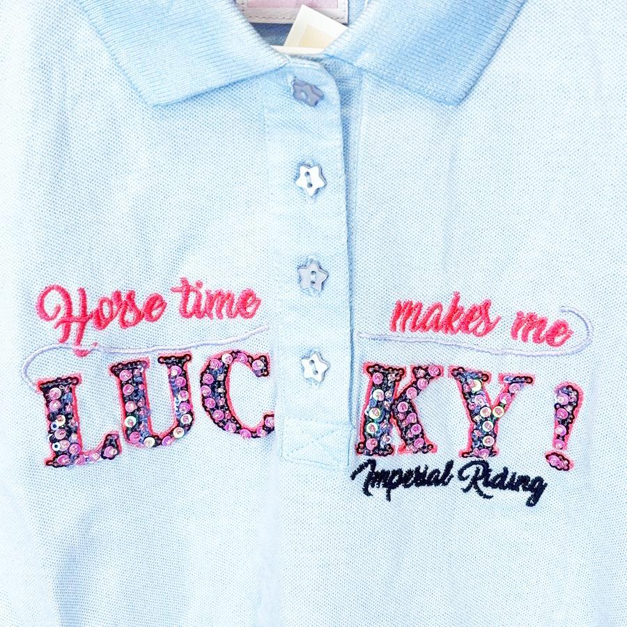 [ブランド] IMPERIAL RIDING[タイプ] ポロシャツ 半袖 ライディングシャツ[表記サイズ] S[対象] レディース[型番] 115741[カラー] ブルー[身幅] 約45cm[着丈] 約62cm[状態] 未使用保管品ですが、襟などに薄い汚れがついています。