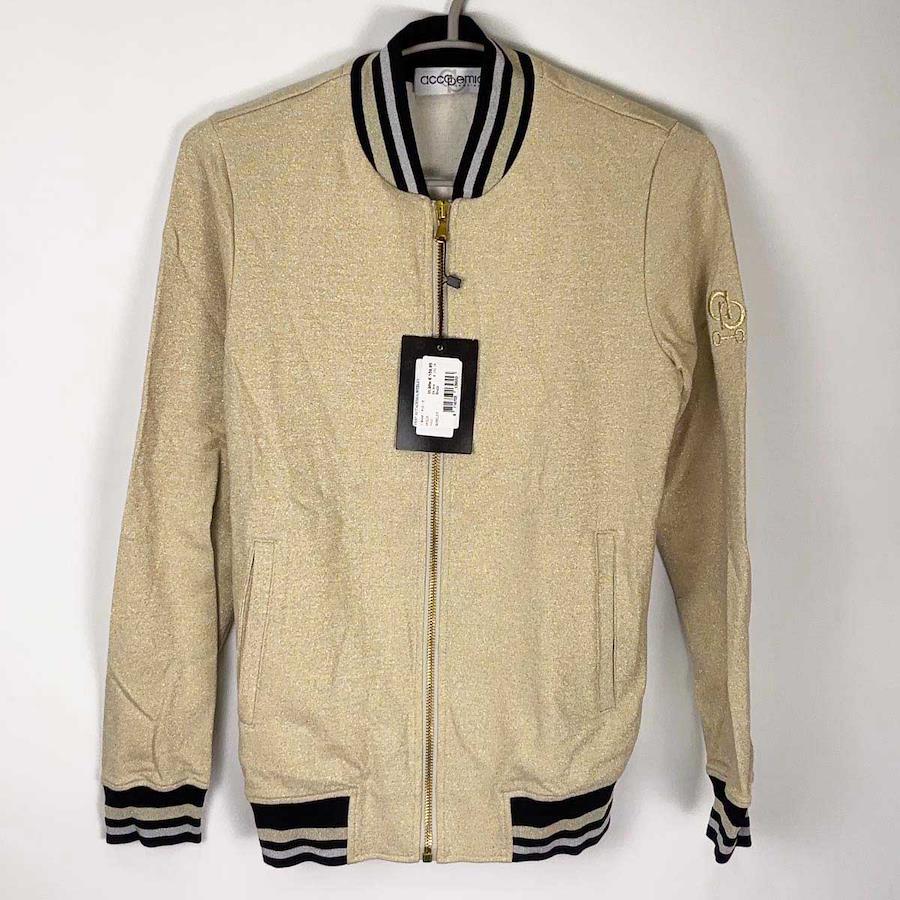 [ブランド] アカデミアイタリアーナ Accademia Italiana[タイプ] SHIRLEY ジップアップ ライディングジャケット[表記サイズ] S[対象] レディース[型番] 118466[カラー] ゴールド[身幅] 約44cm[着丈] 約60cm[状態] 未使用品