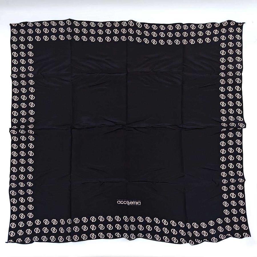 [ブランド] Accademia Italiana アカデミアイタリアーナ[タイプ] W-FOULARD ロゴ シルク[対象] レディース サイズ:縦約78×横約84cm[状態] 未使用品(袋は開封済みで、傷みがあります。)