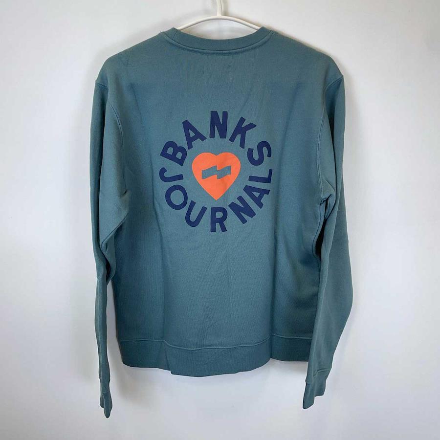 [ブランド] BANKS バンクス[タイプ] HEART RINGS FLEECE トレーナー ロゴ プリント[表記サイズ] S[対象] メンズ[型番] AFL0231[カラー] スモーク ブルー[身幅] 約53cm[着丈] 約60cm[袖丈] 約59cm[肩幅] 約44cm[状態] 未使用品