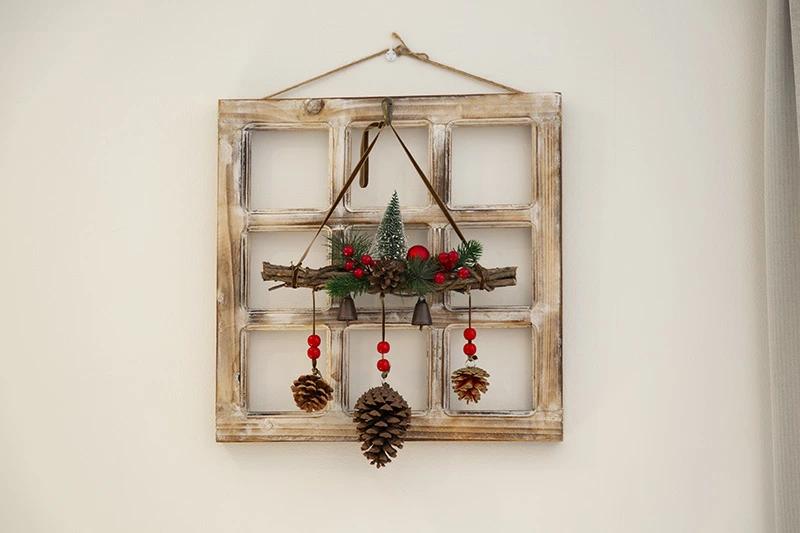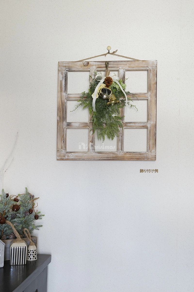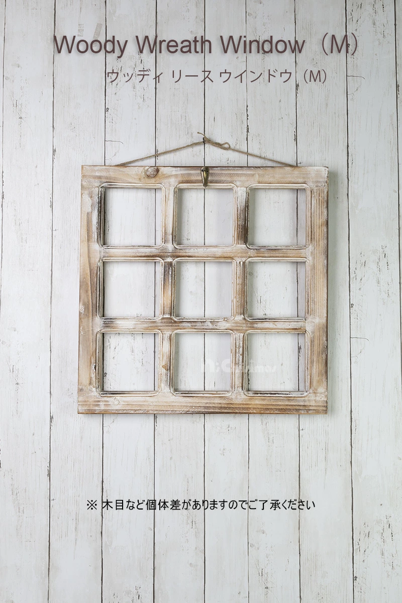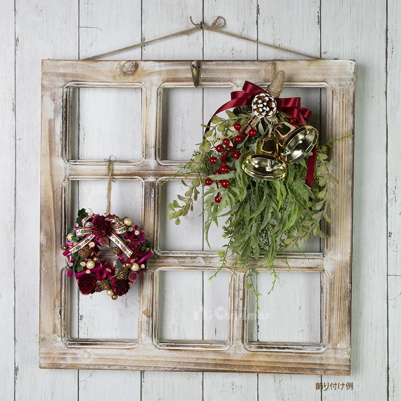 ウッディリースウィンドウ(M)☆壁飾りをもっと素敵に!珍しい窓枠の形をした壁掛けインテリアです。リースや小物をそのまま飾るよりも、このウッデイーリースウインドウを使った方が圧倒的に素敵に見え、特別感が出る不思議なグッズです。壁に飾るインテリアグッズの魅力を最大限に引き出す新しい方法です。ぜひ!※木目などある程度個体差がありますのでご了承願います。