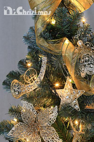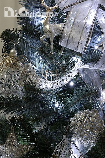 エレガントラディアンスシリーズはきれいなフォルムはもちろん、オーナメントをクリスマスライトの前に配することで幻想的な美しさになります。部屋の電気を消してムーディーな雰囲気を楽しんでください。