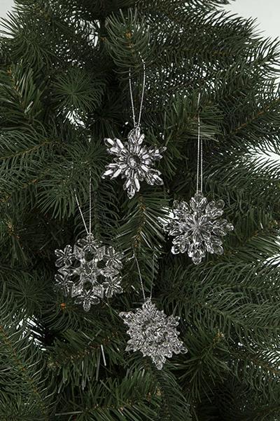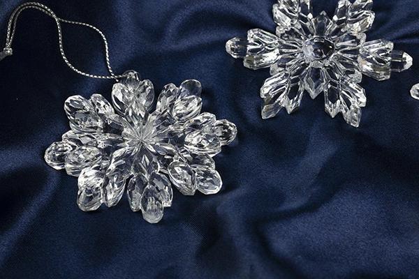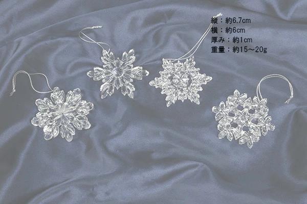 透明度の高いアクリルで雪の結晶を精緻なデザインで作りました。クリスマスツリーはもちろんインテリアやアクセサリーの一部としてもご利用ください。
