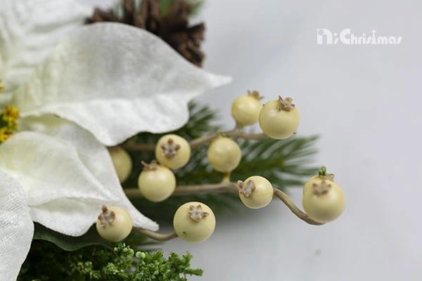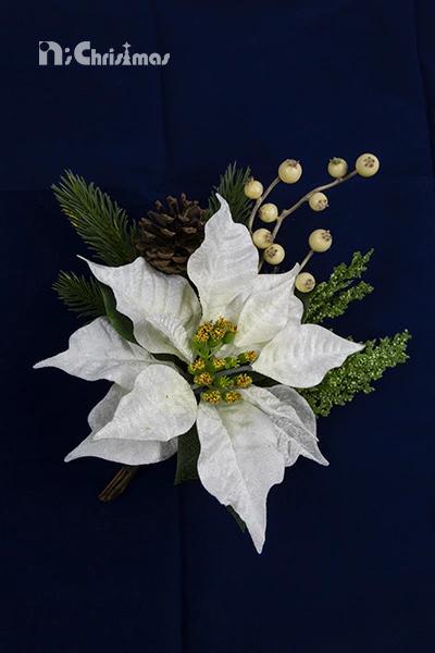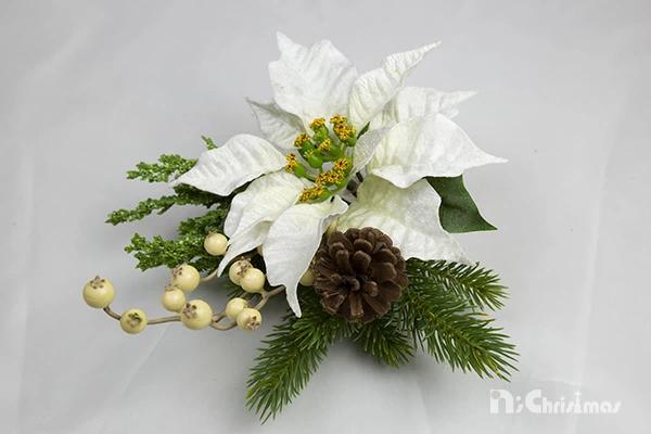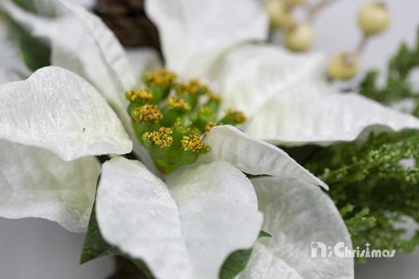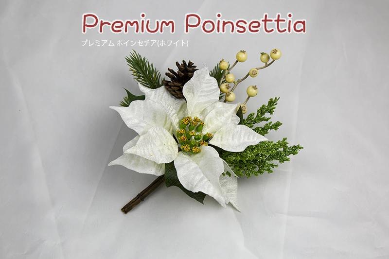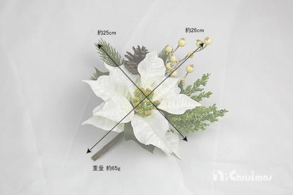 クリスマスシーズンに欠かせないポインセチアですが、さらにゴージャスにアレンジしました。しかもメイドインジャパンでありますっ。※オーナメントワイヤーがあると取付が簡単です。