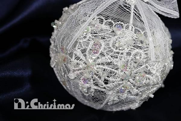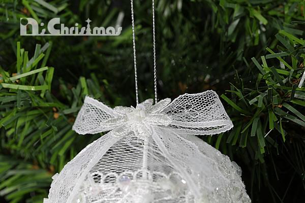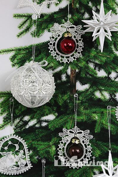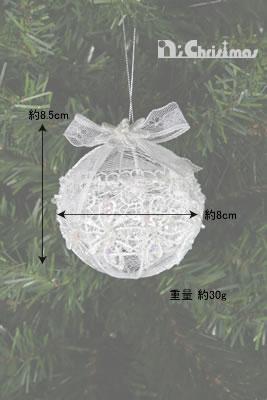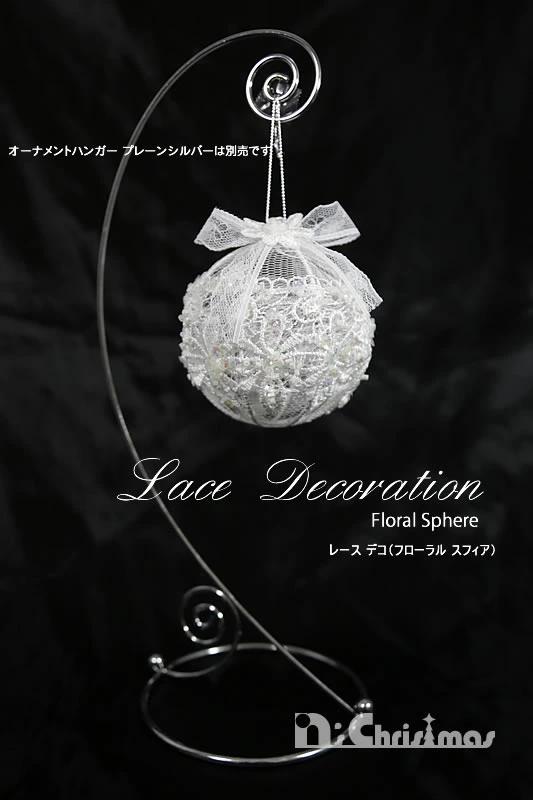しっかりした金属のフレームに繊細なレース生地を被せた美しいオーナメントです。レースは光をただ透過させるだけでなく柔らかく温かみを加えてくれますので、いろいろなオーナメントとの相性バツグンです。またフローラルスフィア/ドロップは立体的な作りですので存在感があります。