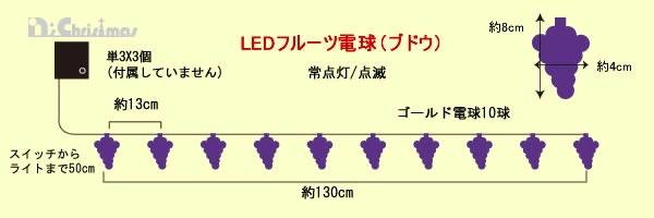 全長:約1.3m(ライト部分)球数:LED10球コードの色:クリアスイッチからライトまでの距離:約50cm常点・点滅単三電池3本使用(別売)屋外使用可(防滴仕様)