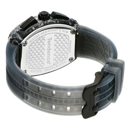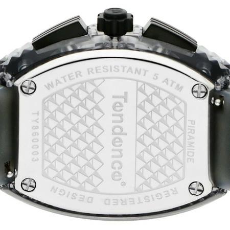 構想から3年、デザインからサンプル制作に至るまでに10回以上の修正を加えようやく完成した15周年にふさわしいテンデンスのトノー型モデル「PIRAMID」。テンデンスウォッチのDNAとして様々なコレクションのベゼルやストラップなどに採用されているピラミッド型の装飾「クルー・ド・パリ」をトノー型のベゼル部分前面にデザインを施し、腕の動きと、角度によって宝石のようにキラキラと輝きを放つ印象的なコレクションです。TY860003の文字盤はマザーオブパールを採用しており、大胆かつ華やかな印象を演出します。