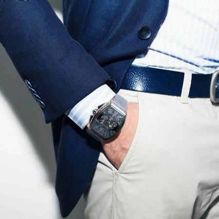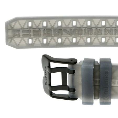 半透明で淡いグレーのシリコンストラップと深みのあるグレーのナイロンケース、さらに文字盤にはマザー・オブ・パールという異素材コンビネーションを、同系色でまとめることで奥行きを感じさせるデザインが特徴です。スーツやジャケットを軸としたドレススタイルと絶妙なマッチングを適え、大人の遊び心を主張します。