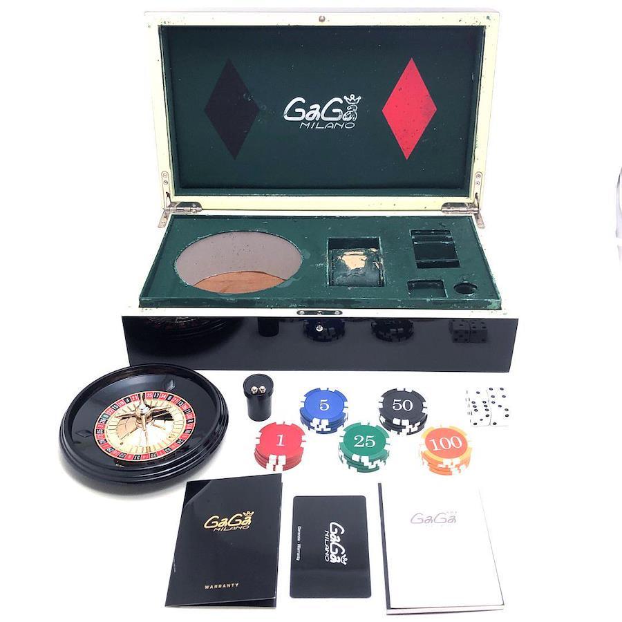 【付属品】外箱・専用ケース・ルーレット台・ボール(2個)・サイコロ(4個)・チップ(20枚)・ギャランティカード・ほか紙類