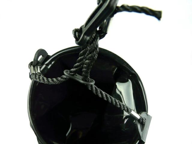 入り口部分が一回り小さく、汲んだ水がこぼれにくい新形状の水汲みバケツ。