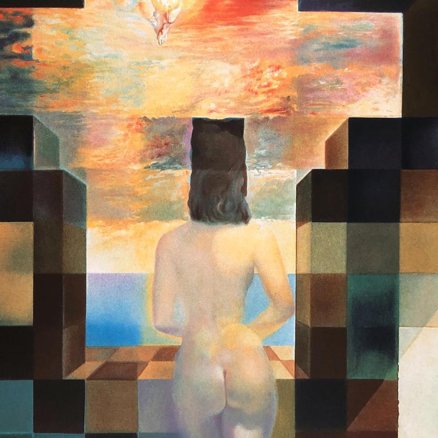 ◎真作◎大型リトグラフ◎ed. 220/5000◎額無し近くで見ると背中を向けて地中海に昇る太陽を見つめるガラの姿に見え、遠くから見るとリンカーンの肖像画が描かれているように見えます。ガラとは1934年に結婚したダリの妻、ガラ・エリュアール。