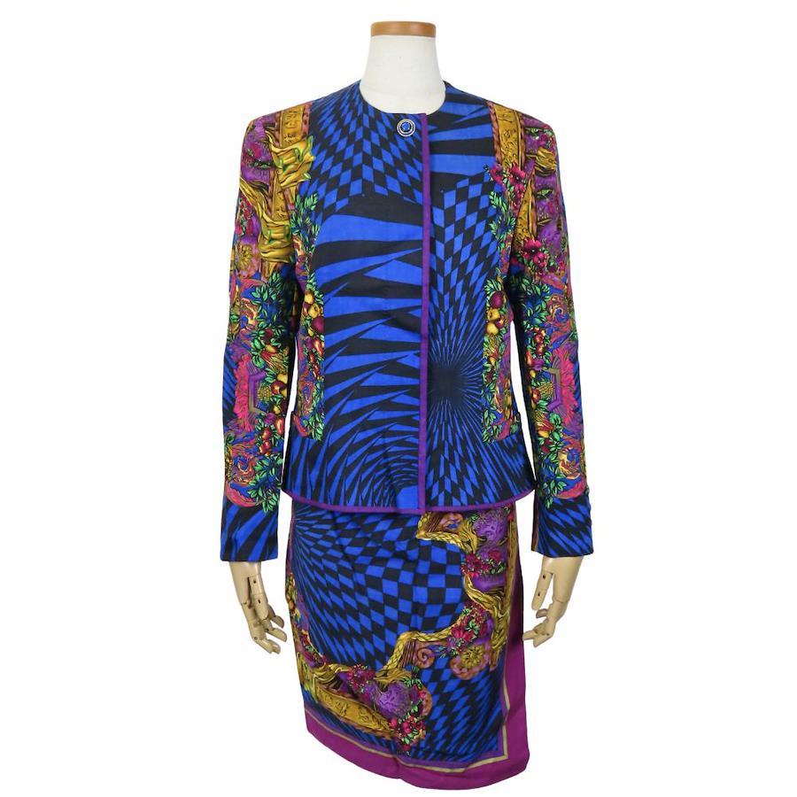 | 品名 | 【中古】 ジャンニ・ヴェルサーチ セットアップ 総柄 スーツ 38 4 ウール ブルー パープル マルチカラー ジャケット スカート アパレル レディース 女性 Gianni Versace |