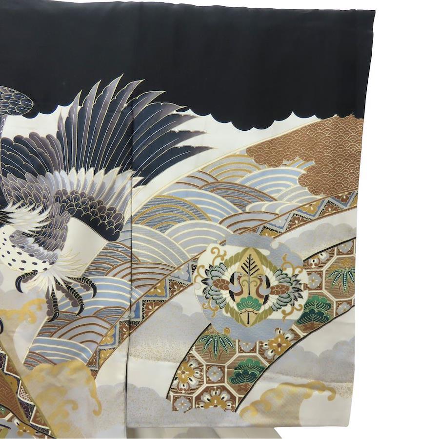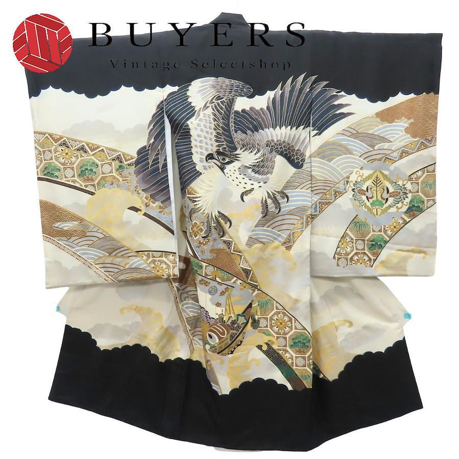 | 品名 | 【中古】 子供着物 七五三 襦袢付き 正絹 化学繊維 ブラック 男の子 祝い着 お宮参り |