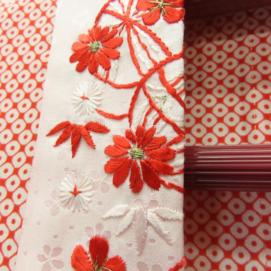 | 品名 | 【中古】 子供着物 襦袢 七五三 正絹(金銀糸除く) レッド系 女の子 刺繍半衿付き |