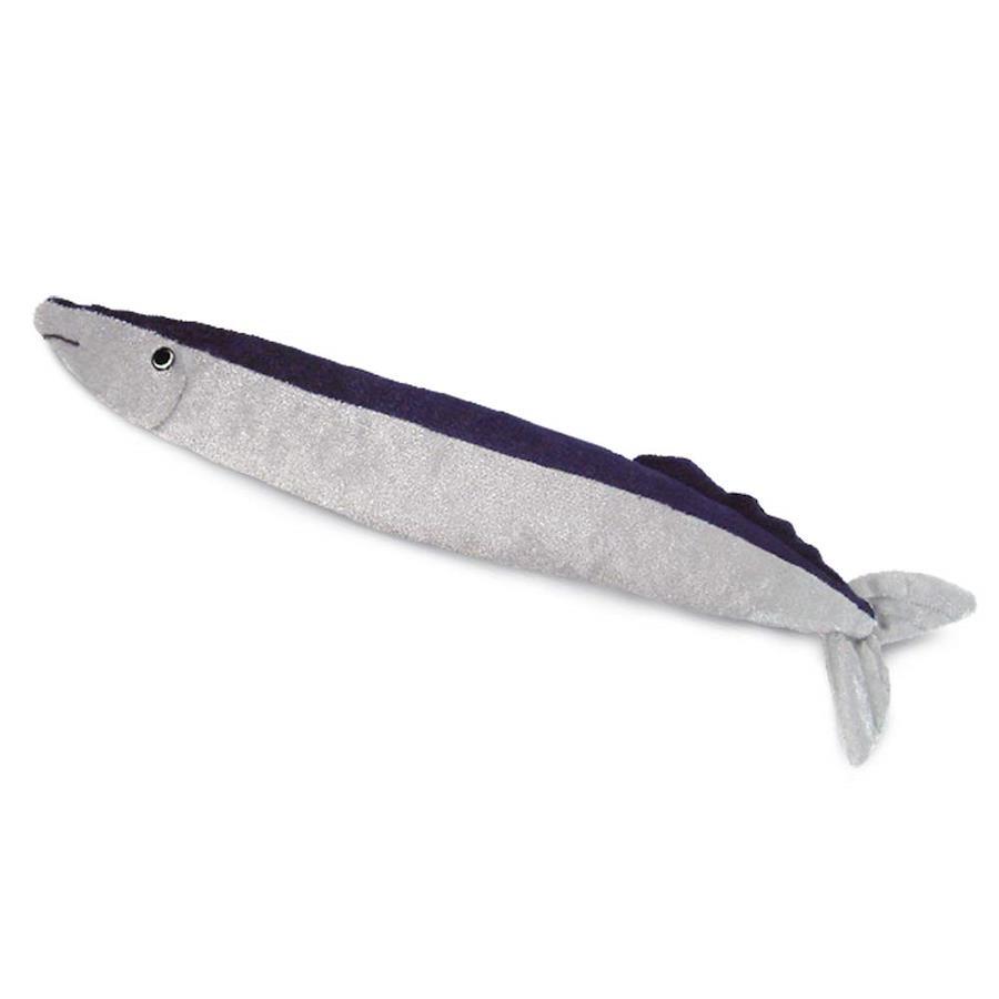 音が鳴るおさかなのぬいぐるみ型ペットトイその姿形、サイズに至るまで詳細に再現されたこのアイテムサンマはカシャカシャ音が鳴ります。A fun plush fish toy for your dog!約H34cm x W6cm x L5cm