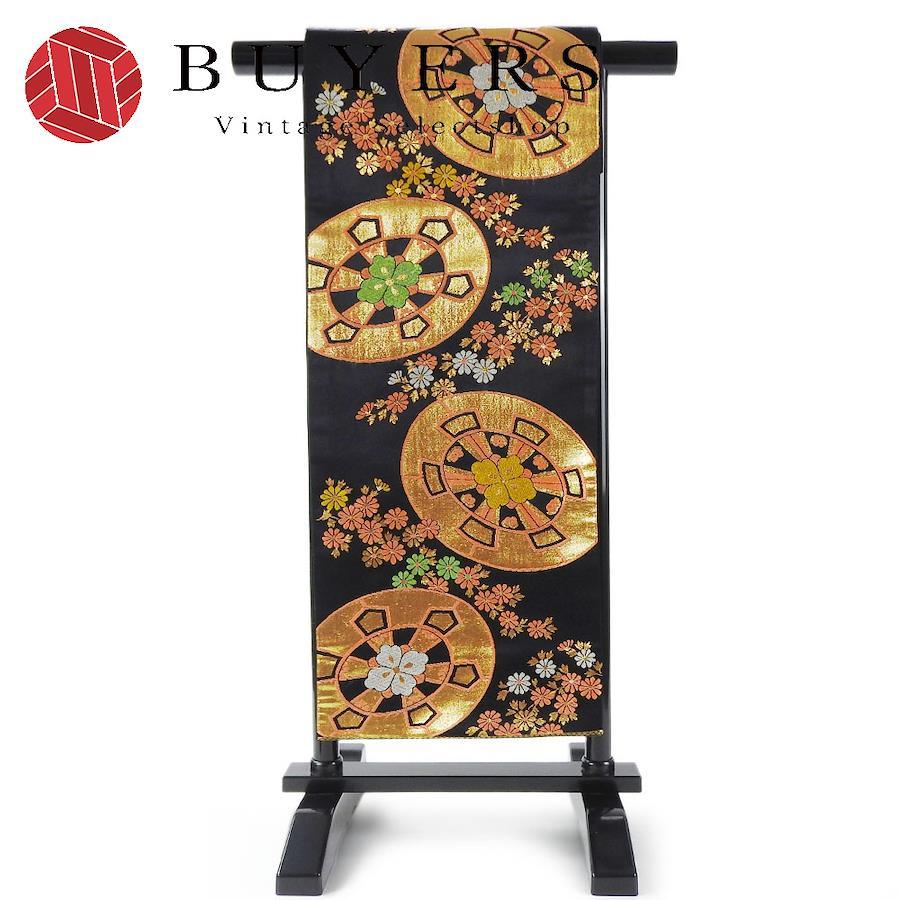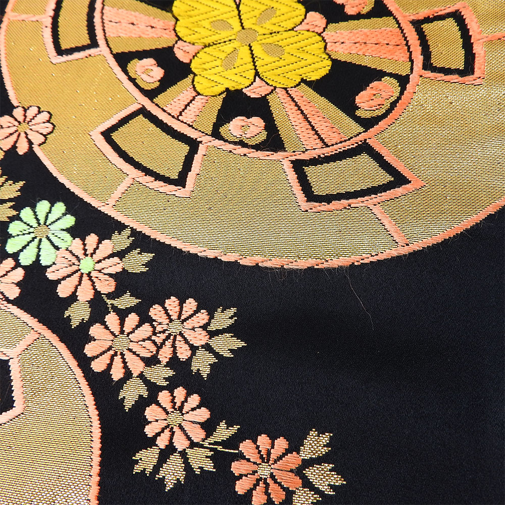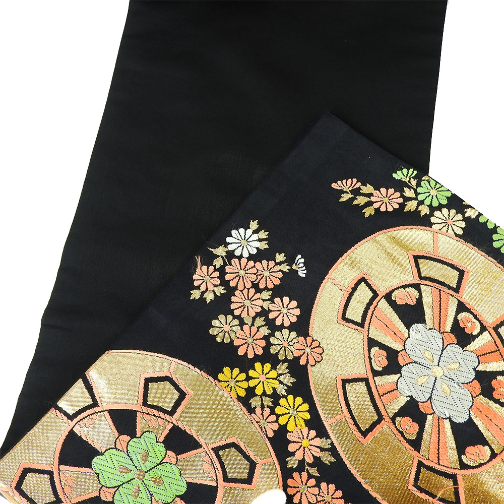 品名:【中古】 袋帯 七五三用 正絹(金銀糸除く) ポリエステル ブラック ゴールド 裏地ポリエステル