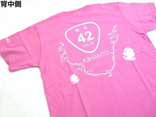 左胸にはあおりねっとのアルファベットのロゴ。左袖にはあおりねっとのひらがなのロゴ。背中には紀伊半島 R42号線のロードマップをでっかくプリントしています。